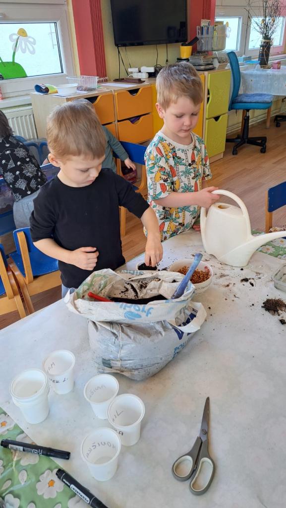 Aktivity v MŠ v měsíci březnu - jarní kytičky, mláďátka, sázení osení, kytiček, barvení vajíček.