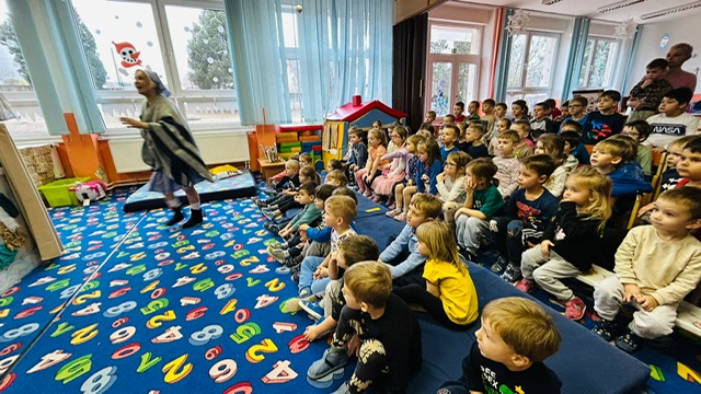 V únoru navštívilo naši školku Divadlo Zvoneček a zahrálo dětem klasickou pohádku O dvanácti měsíčkách.