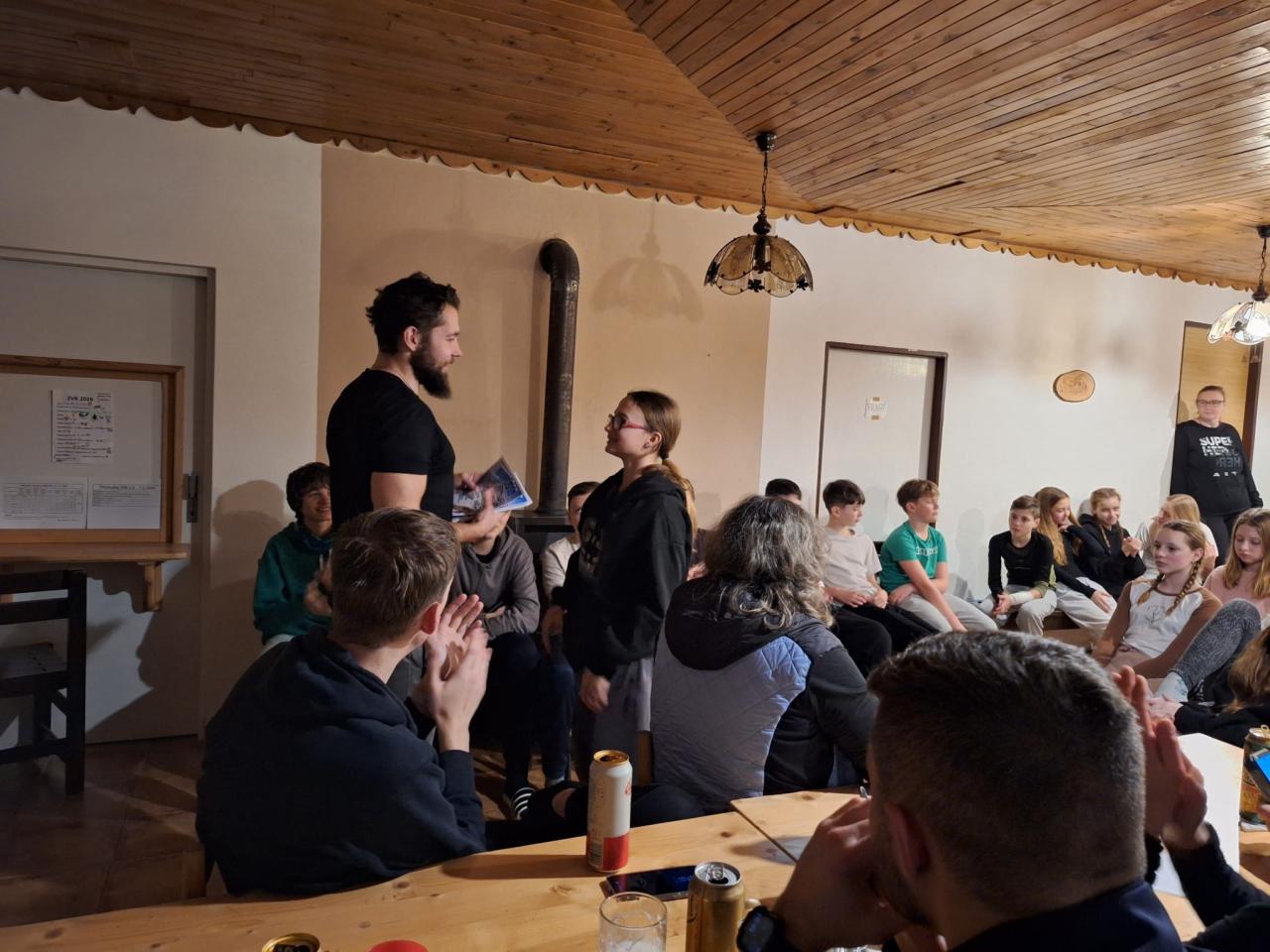 Zimní kurz ale nebyl jen o drilu na sjezdovce. Večery v penzionu Savoy patřily společné zábavě, hrám a stmelování party napříč ročníky. Osmáci skvěle doplnili sedmáky a vytvořili jsme jeden tým, který si hory užil naplno.