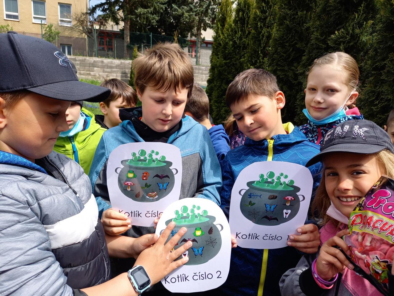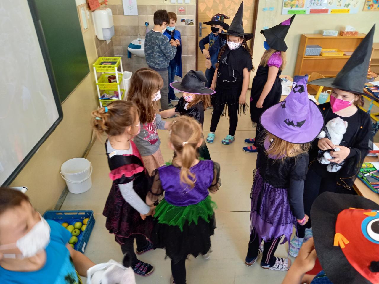 Na oslavu čarodějnic jsme si museli počkat až na pondělí 3.5., ale mohli jsme si tak začarovat i při testování. Celým dnem nás provázela čarodějnice Petunie, které děti pomáhaly najít ingredience do zapomenutého lektvaru. Během dubna jsem oslavili i Den Země, uklidili jsme okolí školy.