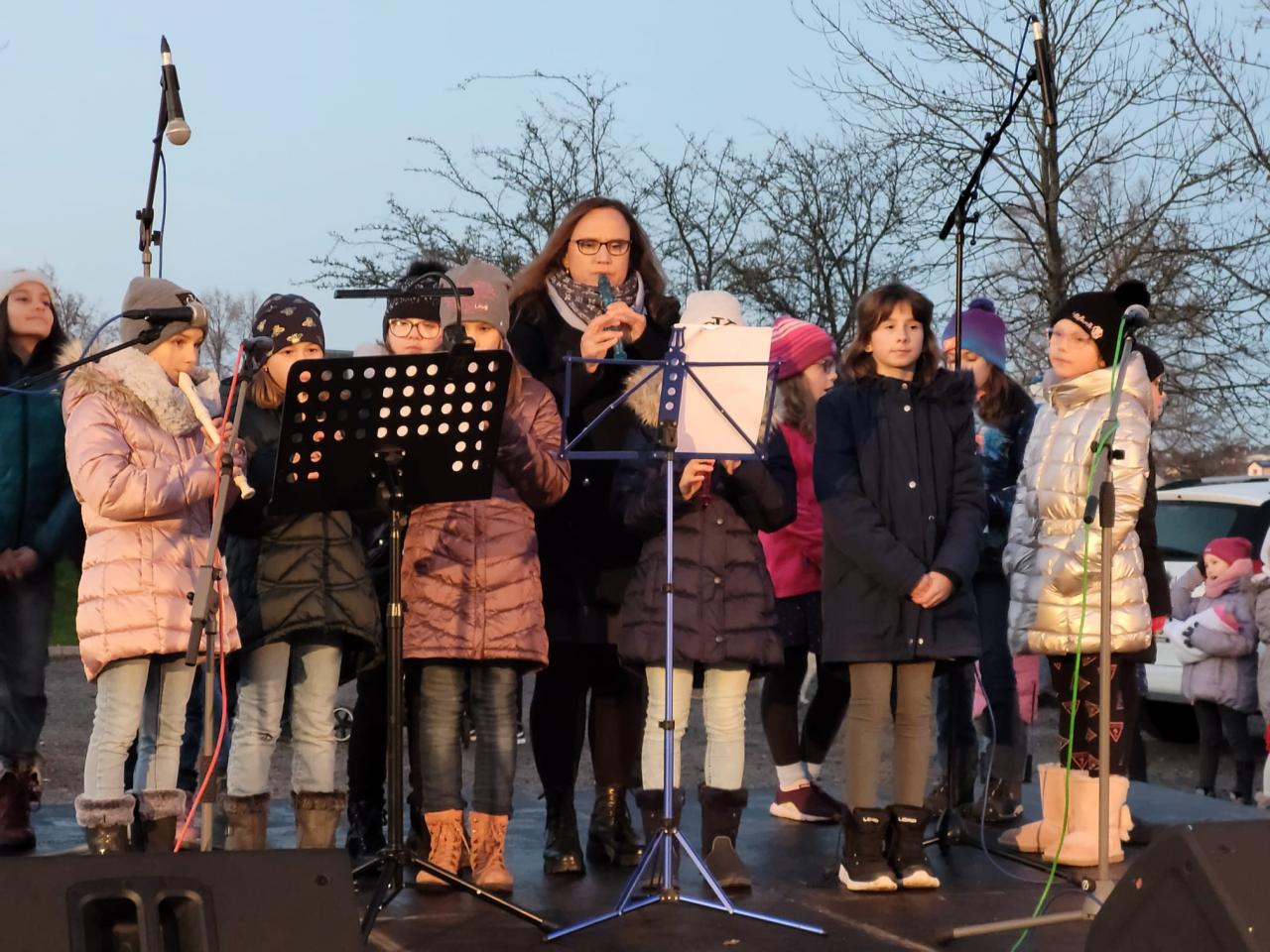 Žáci ze třídy 2.B, 3.A, 3.B, 5.B a školní sbor vystupovali 27.11. na akci rozsvícení vánočního stromu v Rudolfově.