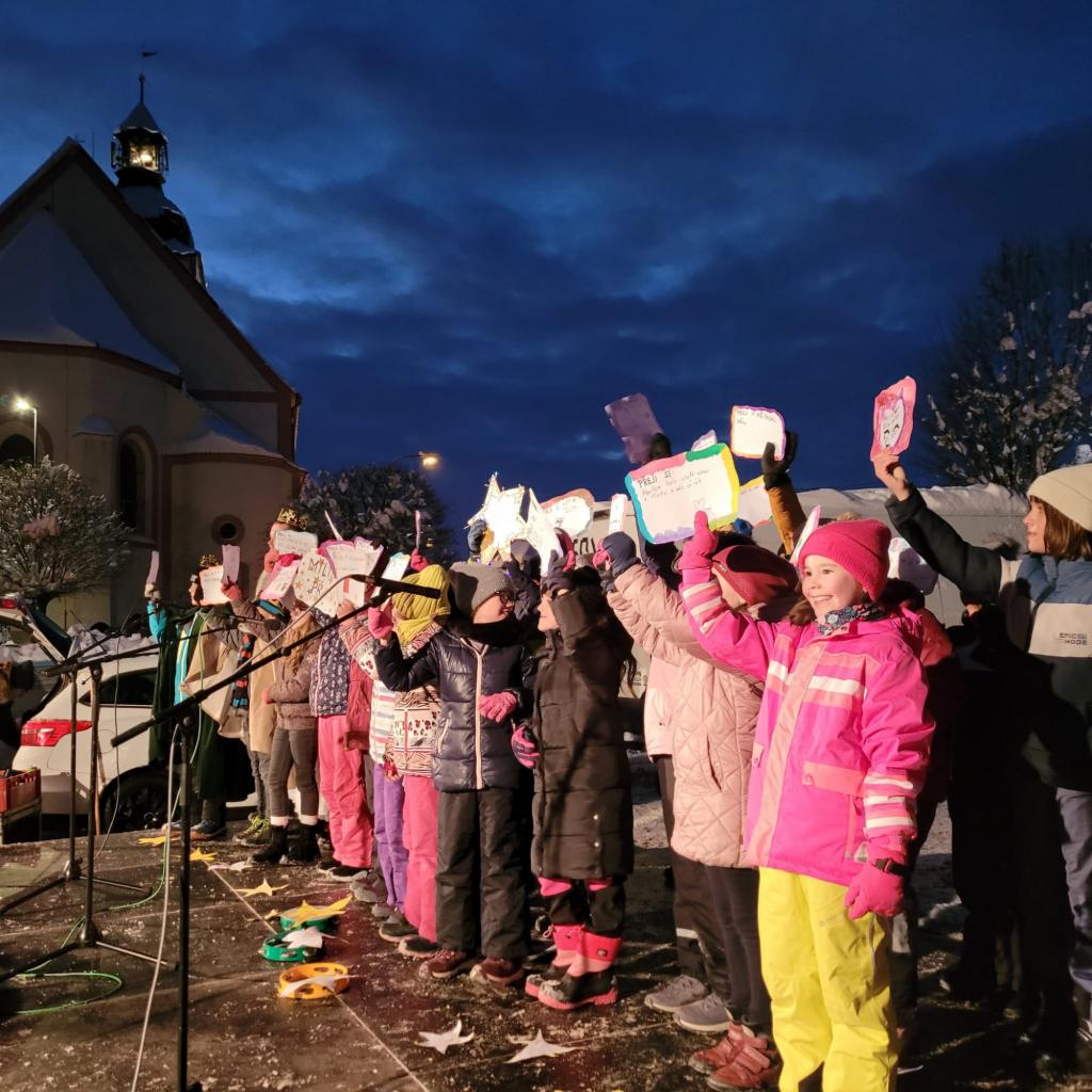 Děti z mateřské školy ze třídy Broučků, žáci ze třídy 3.A, 3.B, 4.B a pěvecký sbor vystoupili v neděli 3.12. při rozsvícení vánočního stromu. Součástí akce byl také jarmark vánočních výrobků. Děkujeme, že jste přišli nakoupit a podpořit děti.