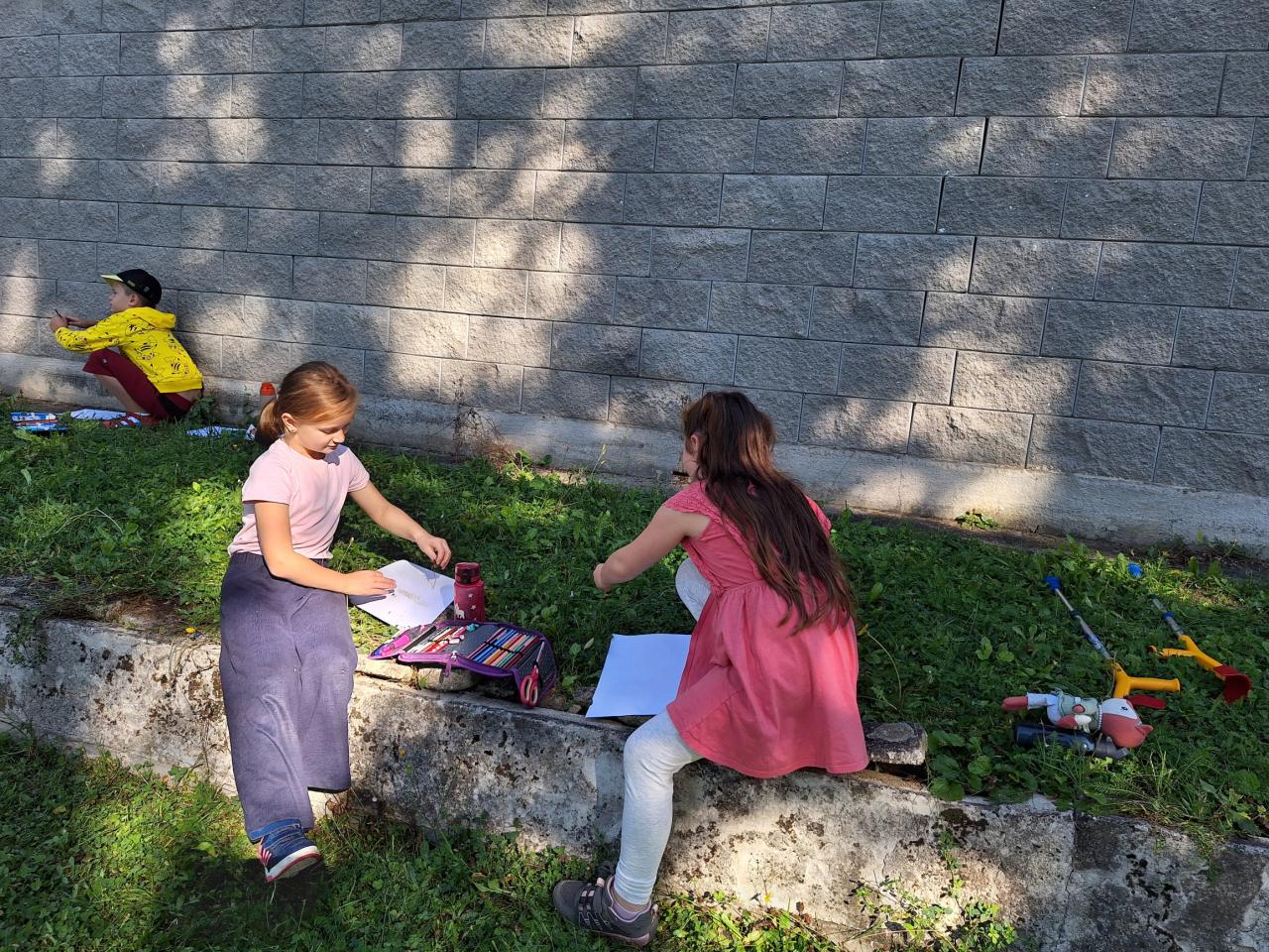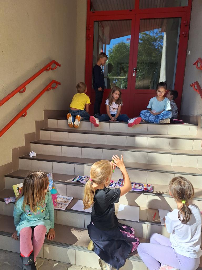 Využili jsme krásného počasí v září některé hodiny výtvarné výchovy strávili venku.